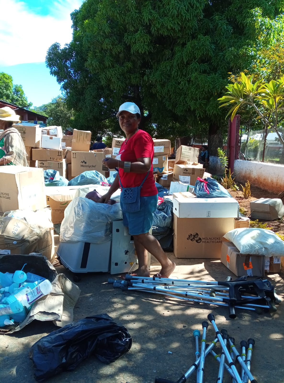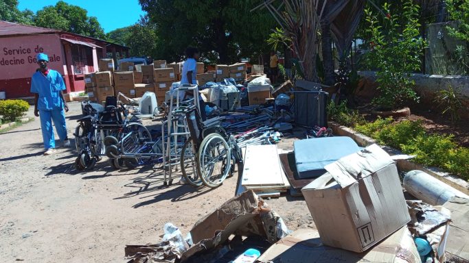 Tables d'accouchement, échographes, générateurs d'oxygène, lit de réanimation bébé, table d'opération, Scialytiques, bureaux, étagères et armoires de rangement, matelas et 220 cartons de consommables